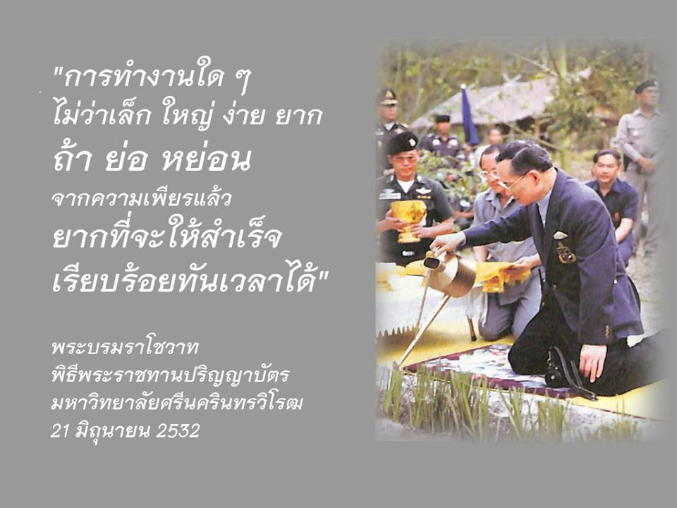 (2560). "พระบรมราโชวาทพิธีพระราชทานปริญญาบัตร มหาวิทยาลัยศรีนครินทรวิโรฒ 21 มิถุนายน 2532".