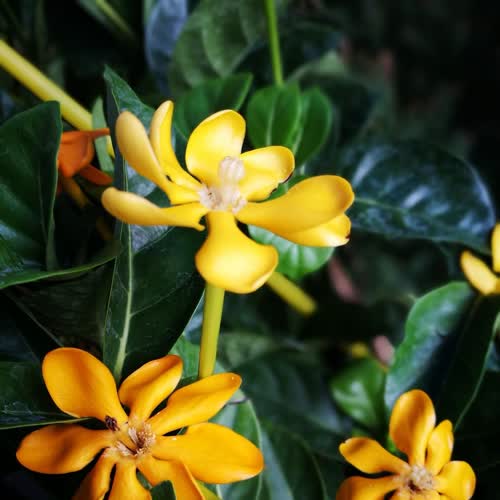 | คำอธิบาย : พุดน้ำบุษย์ เป็นดอกพุดชนิดหนึ่งที่นิยมปลูกกันมาก มีดอกหอม เมื่อแรกบานเป็นสีออกขาวส่งกลิ่นหอมมาก เมื่อบานเข้าวันที่สองสีจะเริ่มออกเหลืองอ่อน ต่อมา ค่อยๆ เหลืองเข้มจนกระทั่งเข้มจัด |