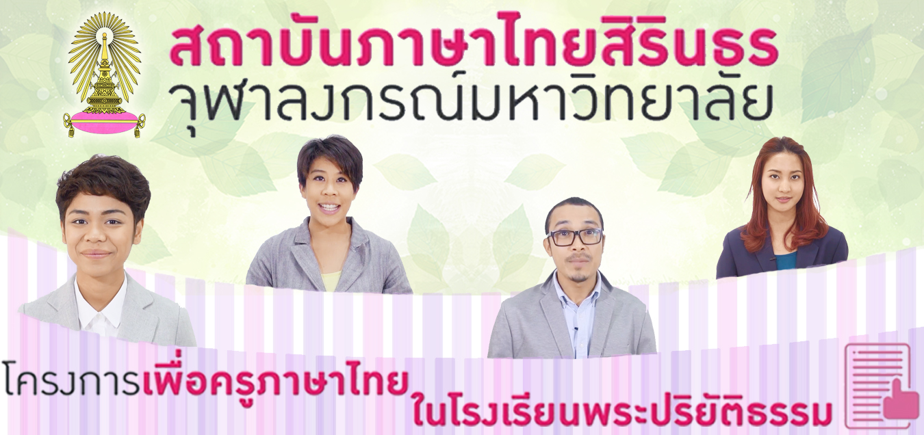 | คำอธิบาย : หลักสูตรการอ่านและหลักสูตรการเขียน ภายใต้โครงการ “เพื่อครูภาษาไทยในโรงเรียนพระปริยัติธรรม” สถาบันภาษาไทยสิรินธร จุฬาลงกรณ์มหาวิทยาลัย โครงการ “เพื่อครูภาษาไทยในโรงเรียนพระปริยัติธรรม” |