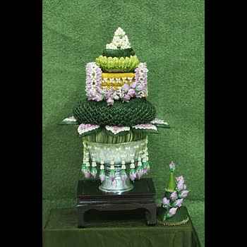 | คำสำคัญ : พาน, ธูปเทียนแพ, พานไหว้ครู, เครื่องสักการะ, พานธูปเทียน, พานใบตอง, หัตถกรรม, การเย็บใบตอง, พานขอขมา, งานใบตอง |