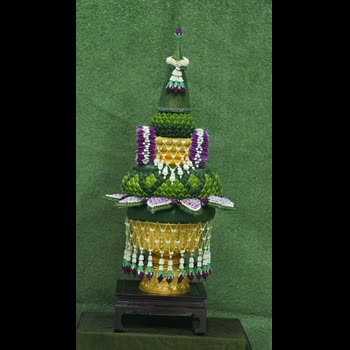| คำสำคัญ : พานใบตอง, การเย็บใบตอง, พานไหว้ครู, เครื่องสักการะ, ธูปเทียนแพ, หัตถกรรม, งานใบตอง, พานขอขมา, พานธูปเทียน, พาน |