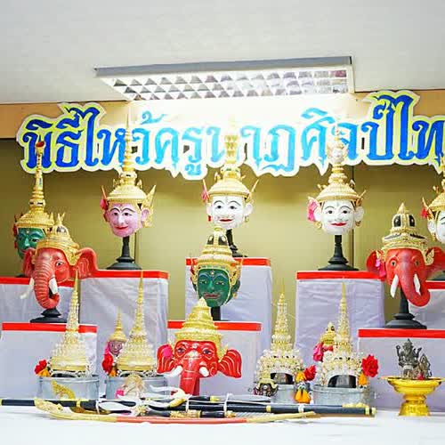 | คำอธิบาย : พิธีไหว้ครูนาฎศิลป์ไทย นิยมกระทำพิธีในวันพฤหัสบดีซึ่งถือเป็นวันครู เป็นการแสดงถึงความเคารพกตเวทีแด่บูรพาจารย์และครูบาอาจารย์ผู้ซึ่งได้ประสิทธิ์ประสาทวิชาให้ศิษย์ ในฐานะผู้สืบทอดมรดกทางวิชาการนาฎศิลป์ไทย เป็นการปวารณาตนเพื่อรับการถ่ายทอดวิชาความรู้เพื่อจะได้เป็นความรู้ติดตัวนำไปประกอบอาชีพ สร้างความเจริญรุ่งเรืองให้แก่ตนเองในภายภาคหน้า อีกทั้งเป็นการโน้มน้าวจิตใจมนุษย์ให้รักษาความดี รักษาวิทยาการสืบเนื่องไปด้วยดี |