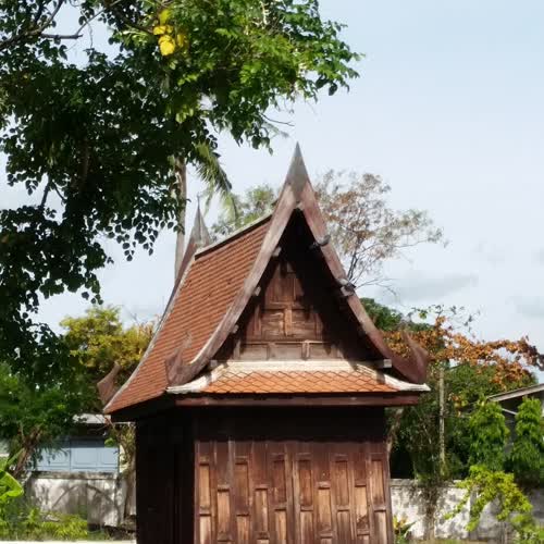 | คำอธิบาย : หอเก็บพระไตรปิฏก เป็นอาคารไม้ผนังฝาปะกน รองรับด้วยเสาไม้ 3เสา จากแนวคิดที่ว่า พระไตรปิฎก ประกอบด้วย 3 ปิฎกคือ พระธรรมปิฏก พระไตรปิฏก และพระสุตันตปิฎก |