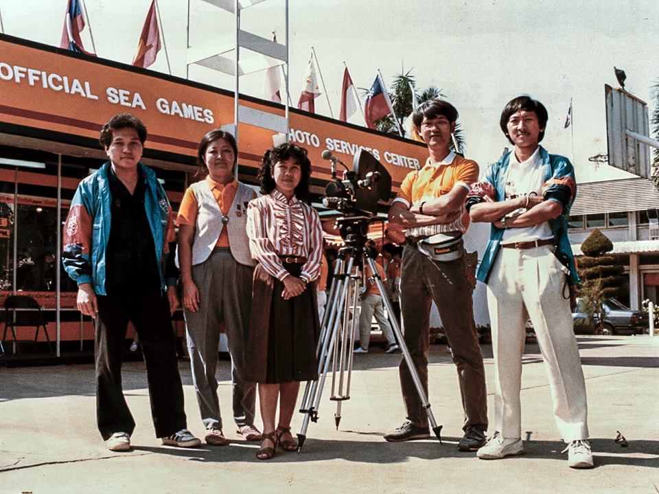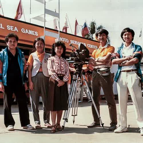 | คำอธิบาย : ทีมงานบันทึกภาพนิ่งและภาพยนตร์ของกรมประชาสัมพันธ์ ที่พูลมาจากหน่วยงานต่างๆ เพื่อสนับสนุนงานของ Press Center ในการเป็นเจ้าภาพ SEA GAME XIII เมื่อ พ.ศ. 2528 |