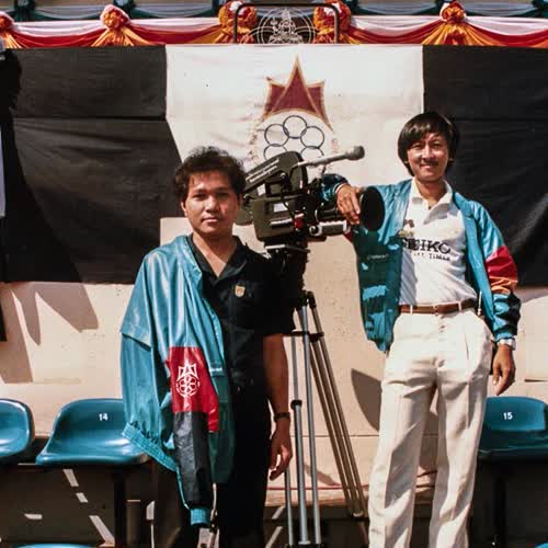 | คำอธิบาย : ทีมงานบันทึกภาพนิ่งและภาพยนตร์ของกรมประชาสัมพันธ์ ที่พูลมาจากหน่วยงานต่างๆ เพื่อสนับสนุนงานของ Press Center ในการเป็นเจ้าภาพ SEA GAME XIII เมื่อ พ.ศ. 2528 |