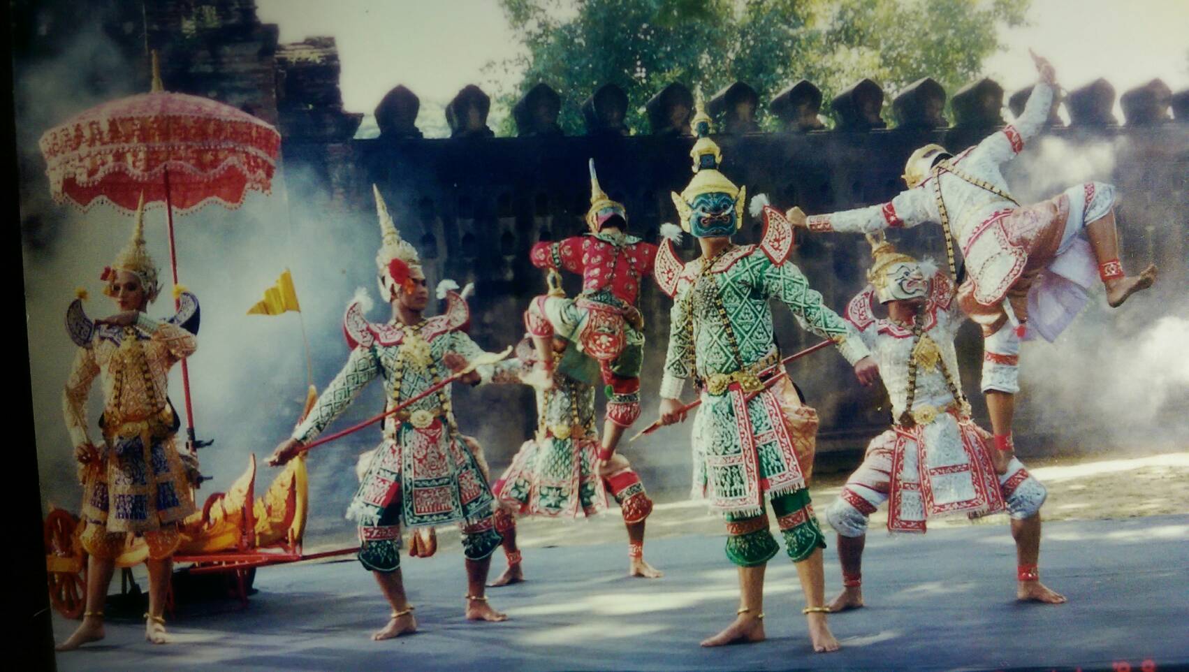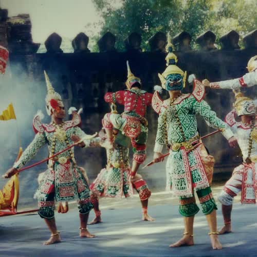 | คำอธิบาย : โขน การขึ้นลอยระหว่างยักษ์กับลิง เครื่องแต่งกาย |