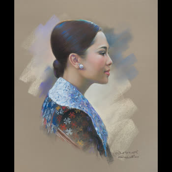 | คำอธิบาย : พระฉายาสาทิสลักษณ์ สมเด็จพระนางเจ้าสิริกิติ์ พระบรมราชินีนาถ ด้วยเทคนิค ภาพสีชอล์ก |