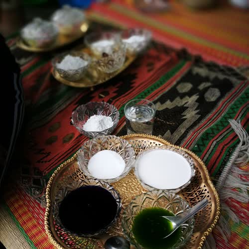 | คำอธิบาย : ส่วนผสมของส่วนแป้งขนมเกสรลำเจียกจะมี แป้งข้าวเหนียว น้ำกะทิ เกลือ สี |