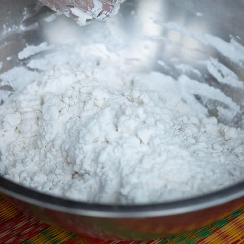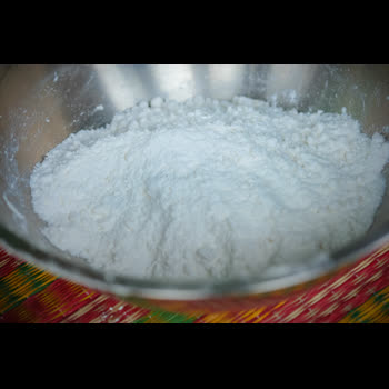| คำอธิบาย : ส่วนผสมแป้งขนมเกสรลำเจียกที่ผสมกันเรียบร้อยแล้ว รอใส่สี |