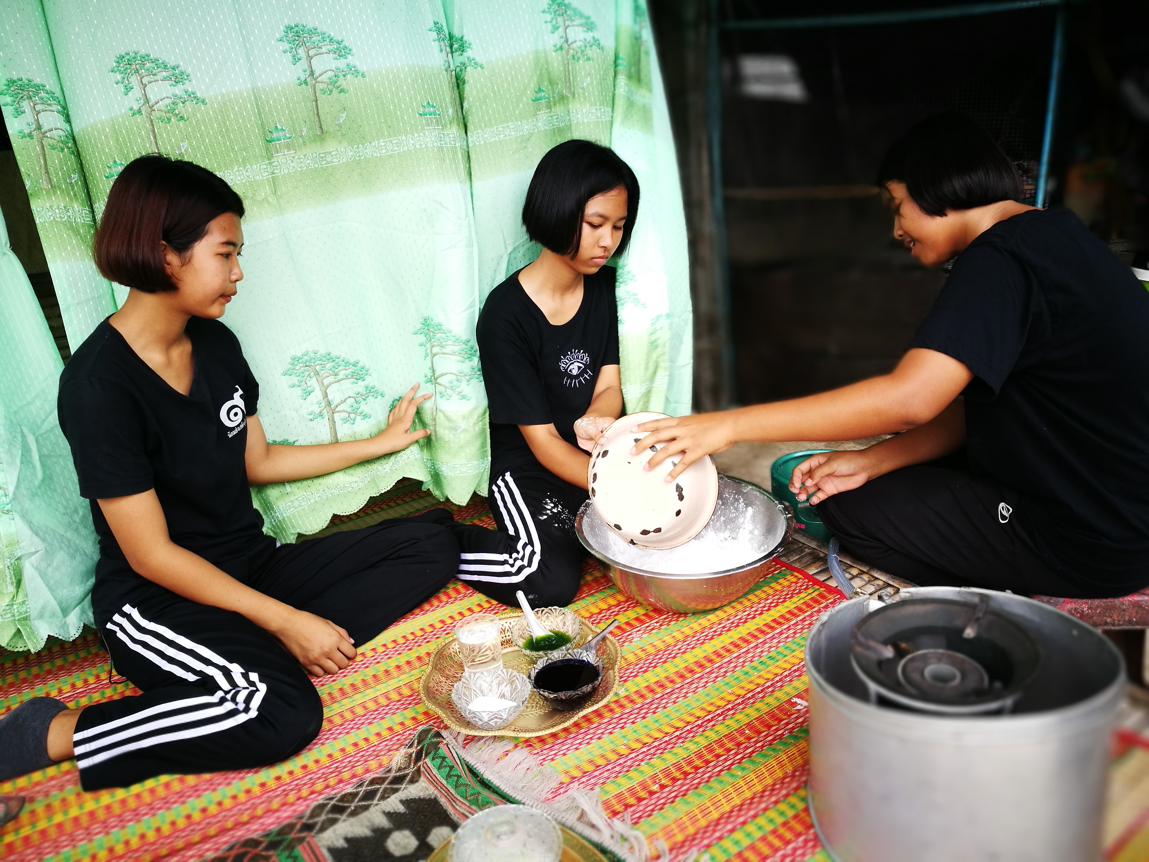 วิทยากรวัยมัธยม กำลังผสมส่วนแป้งขนมเกสรลำเจียก