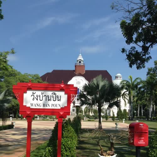 | คำอธิบาย : พระรามราชนิเวศน์ หรือ วังบ้านปืน ตั้งอยู่ ณ อ.เมือง จ.เพชรบุรี เดิมจะใช้เป็นที่ประทับแปรพระราชฐานในฤดูฝนของพระบาทสมเด็จพระจุลจอมเกล้าเจ้าอยู่หัว แต่เสด็จสวรรคตก่อนที่การก่อสร้างจะแล้วเสร็จ เมื่อการก่อสร้างแล้วเสร็จในรัชสมัยพระบาทสมเด็จพระมงกุฎเกล้าเจ้าอยู่หัว ได้พระราชทานนามว่า พระที่นั่งศรเพ็ชรปราสาท และทรงโปรดเกล้าฯ ให้เปลี่ยนชื่อจากพระราชวังบ้านปืน เป็น พระรามราชนิเวศน์ |