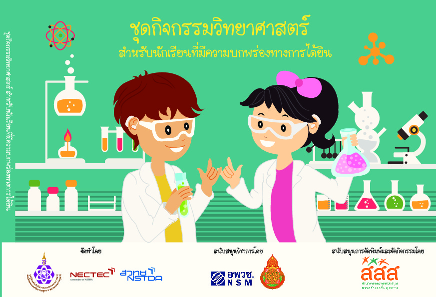 | ชื่อเรื่อง : ชุดกิจกรรมวิทยาศาสตร์สำหรับนักเรียนที่มีความบพร่องทางการได้ยิน |