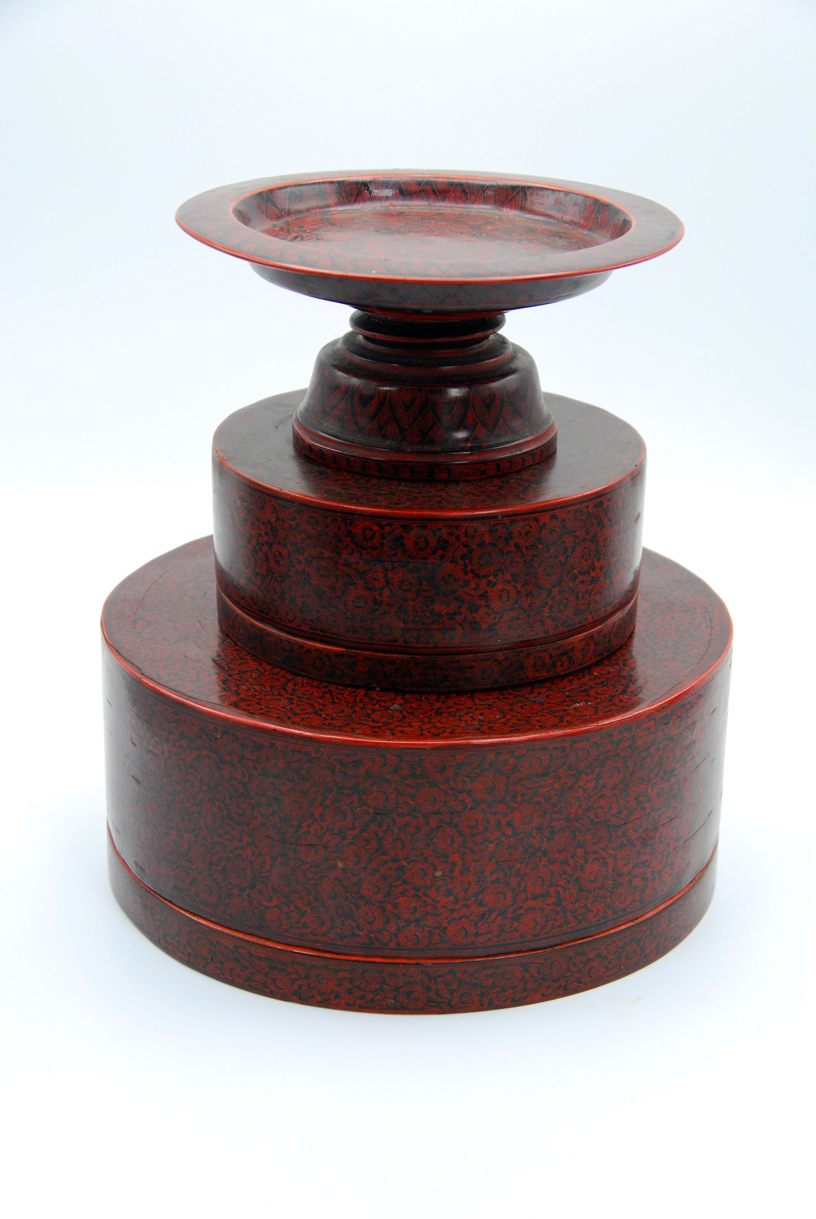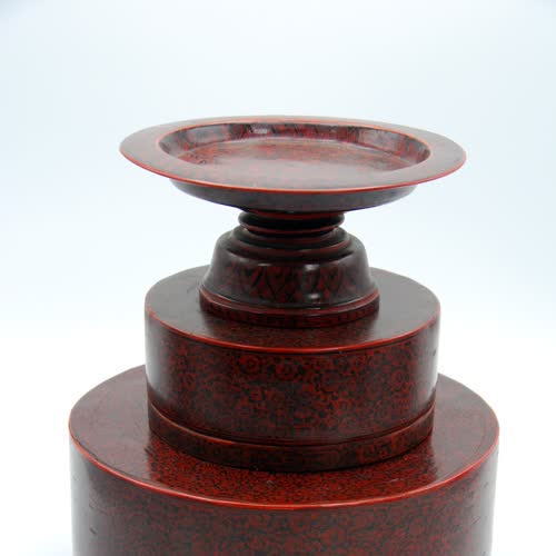 | คำอธิบาย : ของสะสมในพิพิธภัณฑ์บ้านเทพ จ.แพร่ เครื่องเขินเป็นงานหัตถกรรมชนิดหนึ่งซึ่งทำจากไม้ โดยเฉพาะไม้ไผ่ซึ่งพบอยู่ทั่วไปในล้านนา |