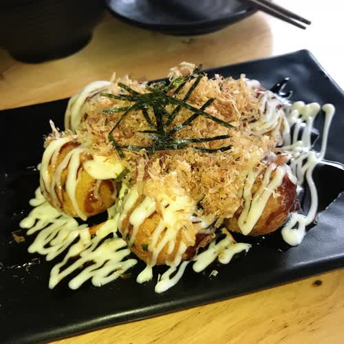 | คำอธิบาย : ทาโกะยากิ เป็นเมนูอาหารญี่ปุ่นชนิดหนึ่ง มีลักษณะก้อนกลมๆทำจากแป้ง มีใส้ข้างใน ราดหน้าด้วยซีอิ๊วญี่ปุ่นหรือโรยด้วยผงปลาแห้ง |