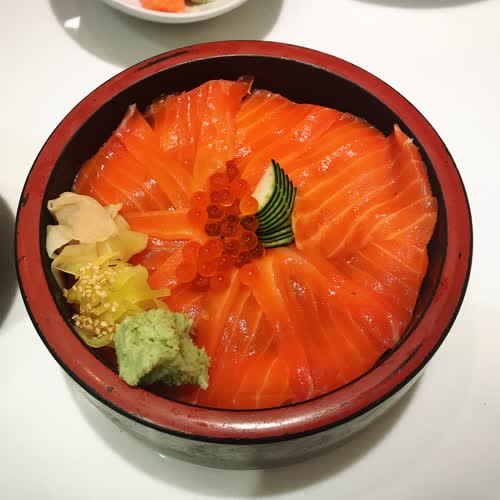 "ข้าวหน้าปลาแซลมอน".