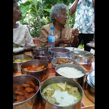 | คำอธิบาย : ชาวบ้านร่วมจัดสำรับอาหารงานสารทเดือนสิบ |
