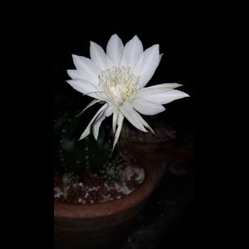 | คำอธิบาย : อิชินอฟซิส ดอกสีขาว แคคตัส (cactus) ที่มีหนามคม เป็นไม้อวบน้ำ (succulent) ประเภทตะบองเพชร |
