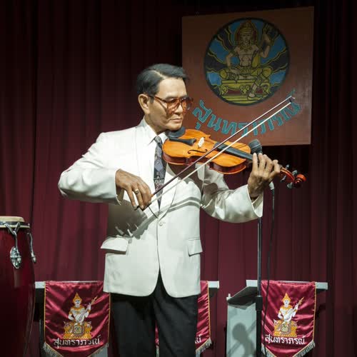 | คำสำคัญ : บรมครูเพลงไทย, หุ่นขี้ผึ้งไฟเบอร์กลาส, พิพิธภัณฑ์หุ่นขี้ผึ้งไทย, เกตุ พิทยากรศิลป์, เอื้อ สุนทรสนาน, มหาวิทยาลัยมหิดล, ครูดวงแก้ว พิทยากรศิลป์ |