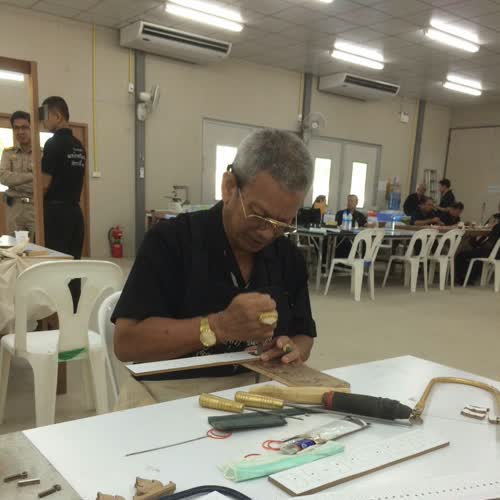 | คำอธิบาย : ครูกิจศุภ บุญเลื่อง ครูช่างฝีมือสุดยอดจากจังหวัดอุทัยธานี ร่วมเป็นจิตอาสาช่างสิบหมู่เพื่อประดิษฐ์พระหีบ พระโกศจันทน์ จากไม้จันทน์หอม ไม้จันทน์หอม เป็นไม้มงคล ใช้ในการประดิษฐ์พระหีบ พระโกศจันทน์ ในพระราชพิธีพระบรมศพพระบาทสมเด็จพระปรมินทรมหาภูมิพลอดุลยเดช |