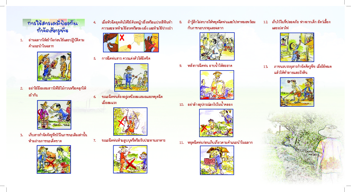 แผ่นพับการใช้สารเคมีป้องกันกำจัด ได้รับใบอนุญาตภายใต้ ให้เผยแพร่-โดยต้องระบุที่มาแต่ห้ามดัดแปลงและห้ามใช้เพื่อการค้า 3.0 Thailand.