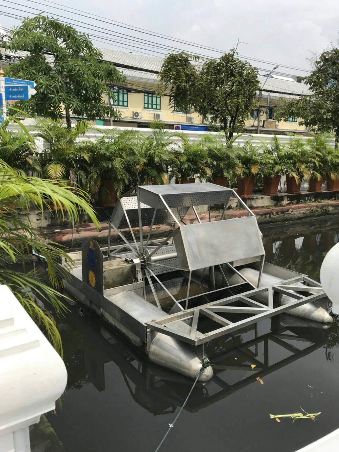 | คำอธิบาย : กังหันน้ำชัยพัฒนา เป็นกังหันที่บำบัดน้ำเสียด้วยการเติมอากาศ ซึ่งพระพระบาทสมเด็จพระปรมิทรมหาภูมิพลอดุลยเดช ได้จดสิทธิบัตรการประดิษฐ์ จากกรมทรัพย์สินทางปัญญา เมื่อวันที่ 2 กุมภาพันธ์ 2536 เป็นสิทธิบัตรในพระปรมาภิไธย ของพระมหากษัตริย์พระองค์แรกของไทยและครั้งแรกของโลก กังหันน้ำชัยพัฒนา หลังนี้ใช้บำบัดน้ำเสีย ที่วัดบวรนิเวศราชวรวิหาร |