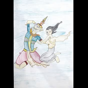 | คำอธิบาย : ภาพวาดตัวละครในวรรณคดีไทยโดยเด็กชายฐาปกรณ์ แสงค าโรงเรียนบ้านหนองวัวด า จ.ก าแพงเพชร |
