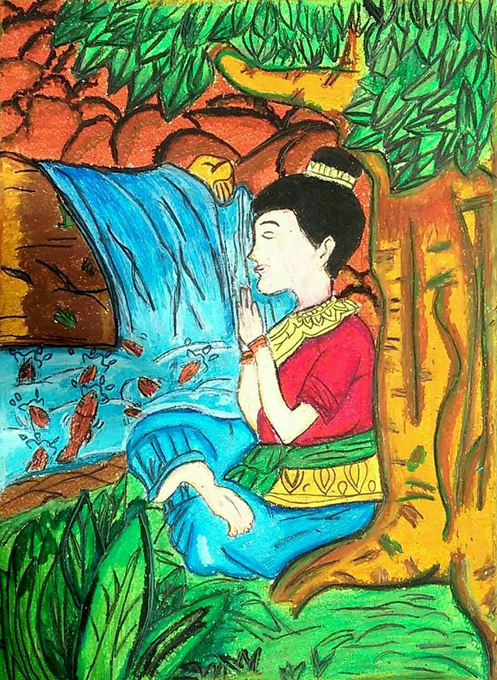 | คำอธิบาย : ภาพวาดตัวละครในวรรณคดีไทยโดยเด็กหญิงกนกวรรณ ยิ้มเจริญโรงเรียนบ้านพรานกระต่าย จ.ก าแพงเพชร |