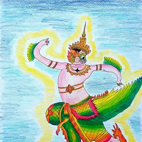 | คำอธิบาย : ภาพวาดตัวละครในวรรณคดีไทยโดยเด็กชายเสฎฐวุฒิ วัชรภัทรโรงเรียนสาธิตฯ จ.ก าแพงเพชร |