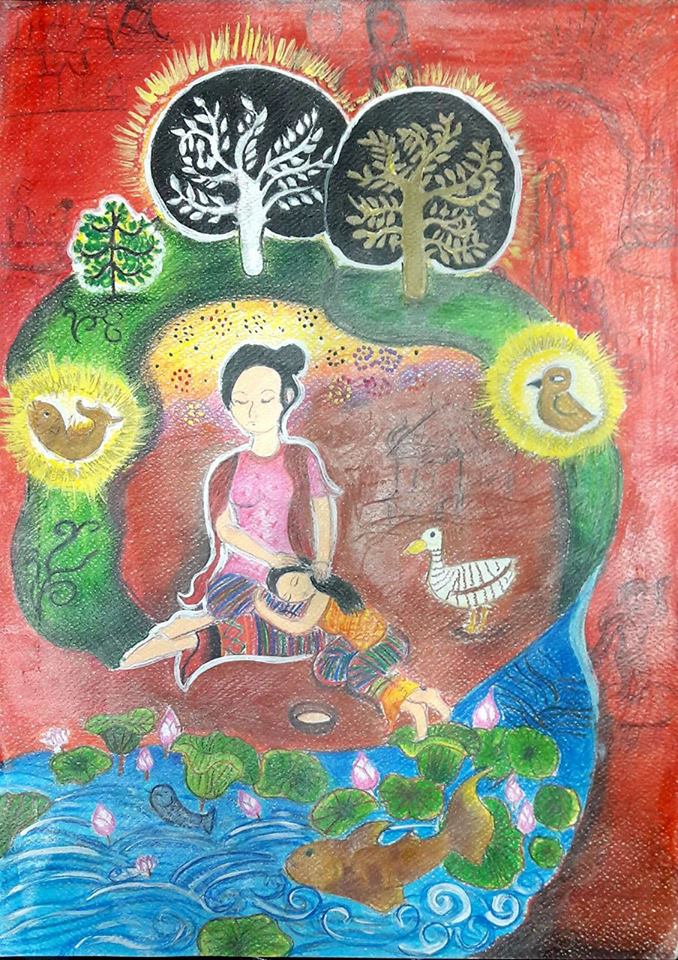 | คำอธิบาย : ภาพวาดตัวละครในวรรณคดีไทยโดยเด็กหญิงณัฐธิดา สนนาคโรงเรียนบ้านหนองหลวง จ.ก าแพงเพชร |