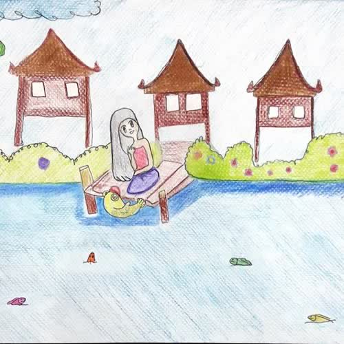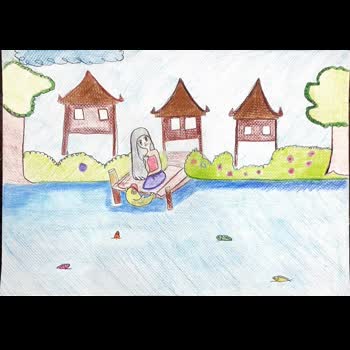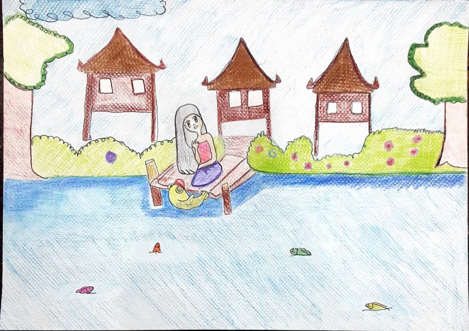 | คำอธิบาย : ภาพวาดตัวละครในวรรณคดีไทยโดยเด็กหญิงกันธิชา คุ้มเณรโรงเรียนบ้านหนองวัวด า จ.ก าแพงเพชร |