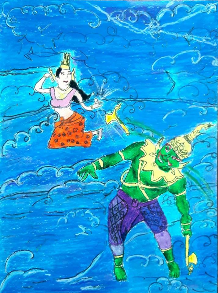 | คำอธิบาย : ภาพวาดตัวละครในวรรณคดีไทยโดยเด็กหญิงกนกวรรณ ยิ้มเจริญโรงเรียนบ้านพรานกระต่าย จ.ก าแพงเพชร |