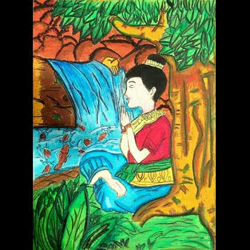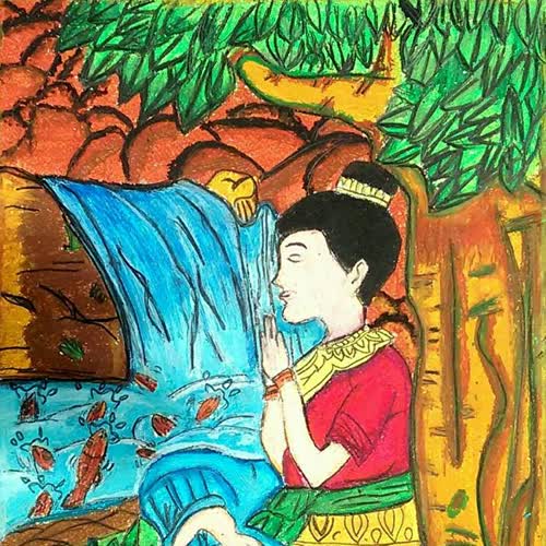 | คำอธิบาย : ภาพวาดตัวละครในวรรณคดีไทยโดยเด็กหญิงกนกวรรณ ยิ้มเจริญโรงเรียนบ้านพรานกระต่าย จ.ก าแพงเพชร |