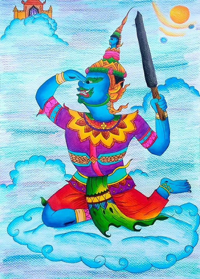 | คำอธิบาย : ภาพวาดตัวละครในวรรณคดีไทยโดยเด็กหญิงนันท์นลิน ขุนวิเศษโรงเรียนบ้านคลองน้ าไหลใต้ จ.ก าแพงเพชร |