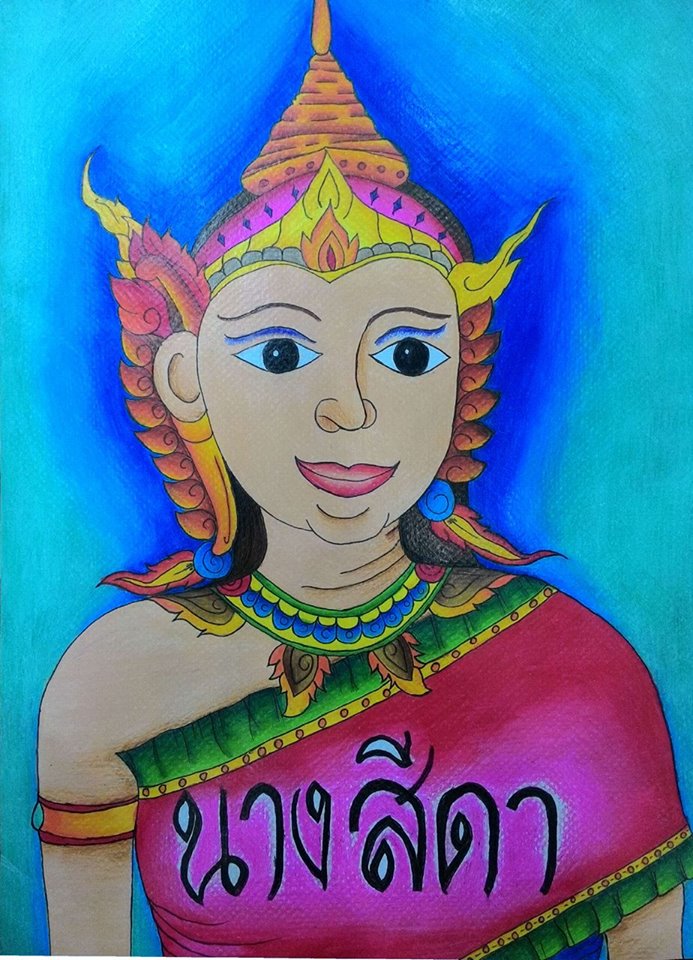 | คำอธิบาย : ภาพวาดตัวละครในวรรณคดีไทยโดยเด็กหญิงนันท์นลิน ขุนวิเศษโรงเรียนบ้านคลองน้ าไหลใต้ จ.ก าแพงเพชร |