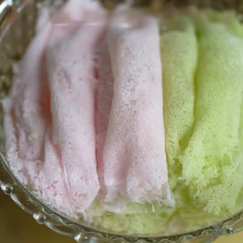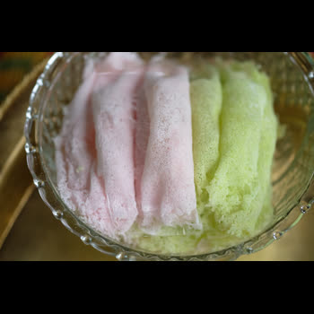 | คำอธิบาย : สีสรรของขนมเกสรลำเจียกจะมีหลากสี อ่อนหวาน สดใส |