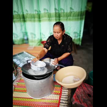 | คำอธิบาย : การร่อนแป้ง ขั้นตอนแรกของการทำขนมเกสรลำเจียก |