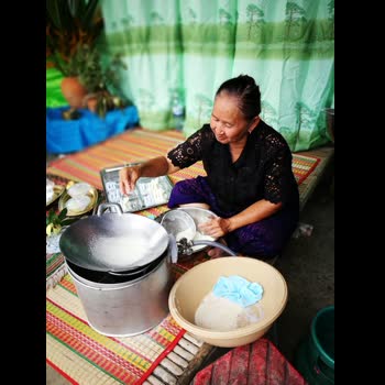 | คำอธิบาย : รอยยิ้มของคนทำขนมไทย ความสุขที่ได้ทำขนม |