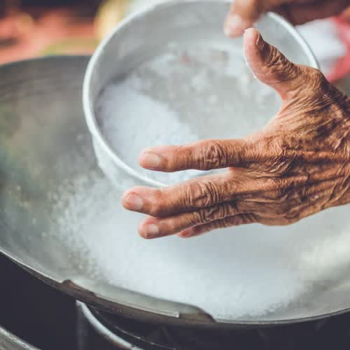 | คำอธิบาย : มือที่ผ่านการทำขนมมาหลายสิบปี |
