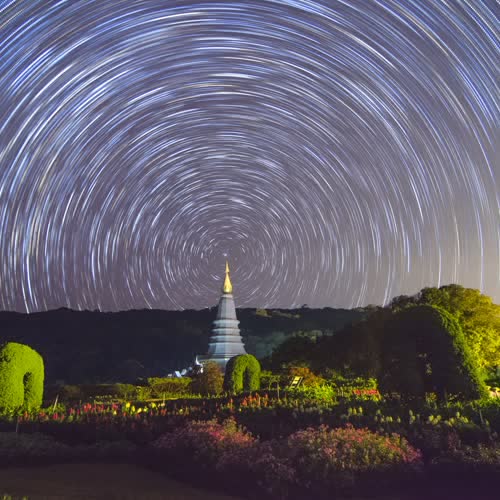 (2560). Star trails over The great pagoda,