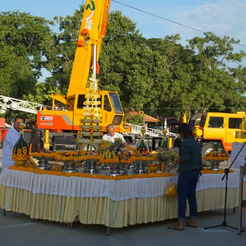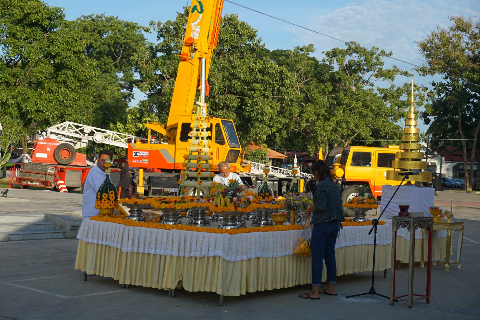 | คำอธิบาย : พิธีบวงสรวงอัญเชิญนพปฏลสุวรรณฉัตรเหนือพระเมรุมาศจำลอง ในพิธีถวายดอกไม้จันทน์ งานพระราชพิธีถวายพระเพลิงพระบรมศพพระบาทสมเด็จพระปรมินทรมหาภูมิพลอดุลยเดชฯ รัชกาลที่ ๙ ณ บริเวณศาลากลางจังหวัดนครสวรรค์ เมื่อวันที่ ๑๐ ตุลาคม ๒๕๖๐ |