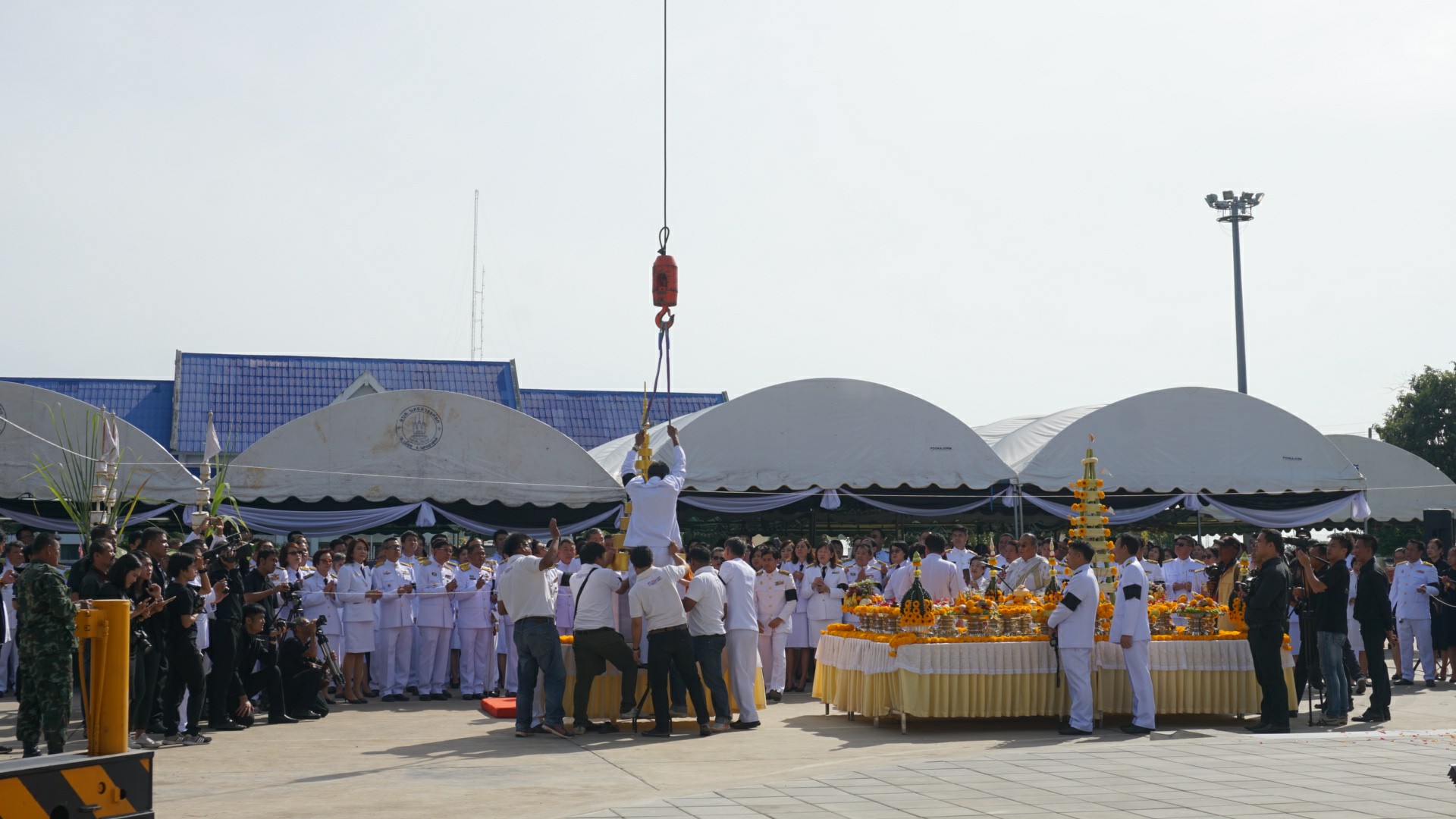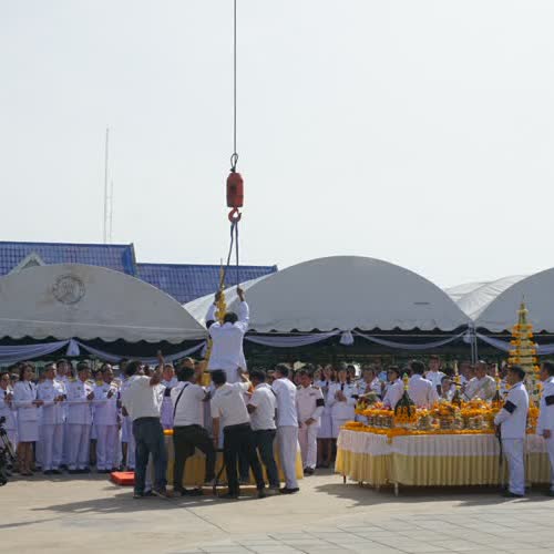 | คำอธิบาย : พิธีบวงสรวงอัญเชิญนพปฏลสุวรรณฉัตรเหนือพระเมรุมาศจำลอง ในพิธีถวายดอกไม้จันทน์ งานพระราชพิธีถวายพระเพลิงพระบรมศพพระบาทสมเด็จพระปรมินทรมหาภูมิพลอดุลยเดชฯ รัชกาลที่ ๙ ณ บริเวณศาลากลางจังหวัดนครสวรรค์ เมื่อวันที่ ๑๐ ตุลาคม ๒๕๖๐ |