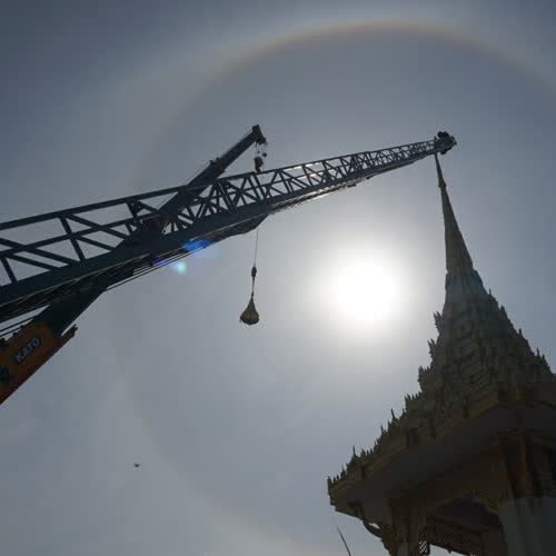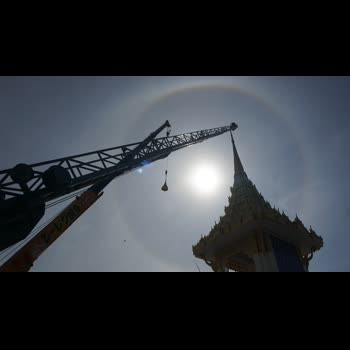 | คำอธิบาย : พระอาทิตย์ทรงกลด ในระหว่างพิธีบวงสรวงอัญเชิญนพปฏลสุวรรณฉัตรเหนือพระเมรุมาศจำลอง ในพิธีถวายดอกไม้จันทน์ งานพระราชพิธีถวายพระเพลิงพระบรมศพพระบาทสมเด็จพระปรมินทรมหาภูมิพลอดุลยเดชฯ รัชกาลที่ ๙ ณ บริเวณศาลากลางจังหวัดนครสวรรค์ เมื่อวันที่ ๑๐ ตุลาคม ๒๕๖๐ |