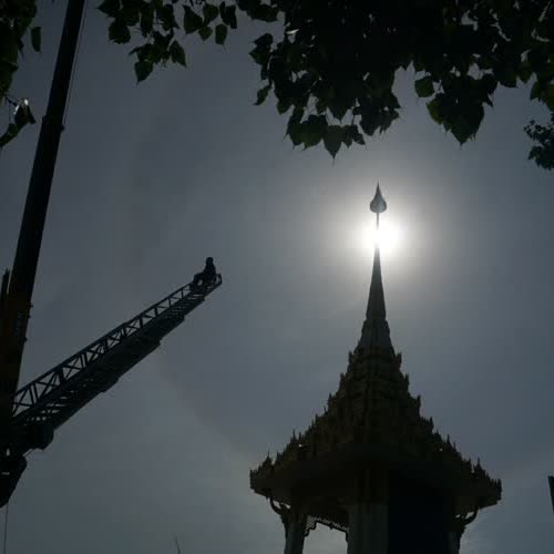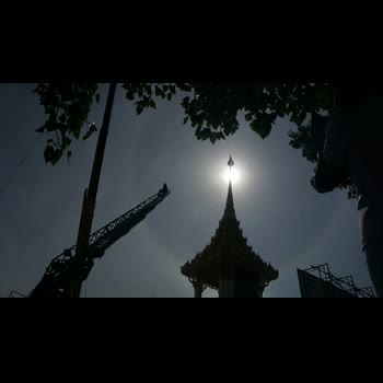 | คำอธิบาย : พระอาทิตย์ทรงกลด ในระหว่างพิธีบวงสรวงอัญเชิญนพปฏลสุวรรณฉัตรเหนือพระเมรุมาศจำลอง ในพิธีถวายดอกไม้จันทน์ งานพระราชพิธีถวายพระเพลิงพระบรมศพพระบาทสมเด็จพระปรมินทรมหาภูมิพลอดุลยเดชฯ รัชกาลที่ ๙ ณ บริเวณศาลากลางจังหวัดนครสวรรค์ เมื่อวันที่ ๑๐ ตุลาคม ๒๕๖๐ |