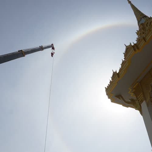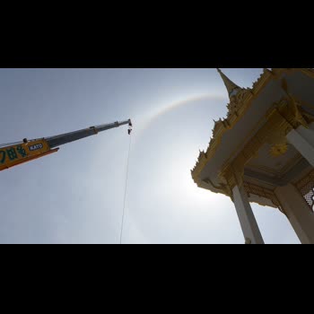 | คำอธิบาย : ปรากฎการณ์พระอาทิตย์ทรงกลด ในระหว่างพิธีบวงสรวงอัญเชิญนพปฏลสุวรรณฉัตรเหนือพระเมรุมาศจำลอง ในพิธีถวายดอกไม้จันทน์ งานพระราชพิธีถวายพระเพลิงพระบรมศพพระบาทสมเด็จพระปรมินทรมหาภูมิพลอดุลยเดชฯ รัชกาลที่ ๙ ณ บริเวณศาลากลางจังหวัดนครสวรรค์ เมื่อวันที่ 10 ตุลาคม 2560 |