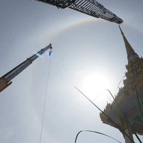 พิธีบวงสรวงยกนพปฏลสุวรรณฉัตรเหนือพระเมรุมาศจำลอง ได้รับใบอนุญาตภายใต้ ให้เผยแพร่-โดยต้องระบุที่มาแต่ห้ามดัดแปลงและห้ามใช้เพื่อการค้า 3.0 Thailand.