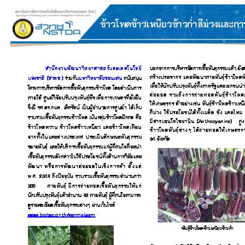 | ชื่อเรื่อง : ข้าวโพดข้าวเหนียวข้าวก่ำสีม่วงและการแปรรูป |