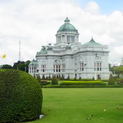 | คำอธิบาย : พระบาทสมเด็จพระจุลจอมเกล้าเจ้าอยู่หัว รัชกาลที่ ๕ ทรงพระกรุณาโปรดเกล้าโปรดกระหม่อมให้ก่อสร้างพระที่นั่งองค์นี้ขึ้นในพื้นที่ของพระราชวังดุสิต เมื่อ พ.ศ. ๒๔๕๐ องค์พระที่นั่งงามสง่าด้วยสถาปัตยกรรมอิตาเลียน พระที่นั่งอนันตสมาคมเป็นพระที่นั่งองค์สำคัญของชาติ ใช้เป็นสถานที่ประกอบพระราชพิธี และพิธีต่างๆ ของพระบาทสมเด็จพระปรมินทรมหาภูมิพลอดุลยเดช พระราชทานพระบรมราชานุญาต ให้สถาบันสิริกิติ์สวนจิตรลดา ใช้เป็นพิพิธภัณฑ์ศิลป์แผ่นดิน ตั้งแต่ พ.ศ. ๒๕๕๑ (เริ่มสร้างในรัชกาลที่ ๕ แล้วเสร็จในรัชกาลที่ ๖ ใช้เวลาทั้งหมด ๘ ปี เป็นพระที่นั่งในพระราชวังเขตดุสิต เป็นพระที่นั่งหินอ่อนเพียงองค์เดียวในประเทศไทย หินอ่อนทั้งหมด นำเข้าจากเมืองคารารา ประเทศอิตาลี) |