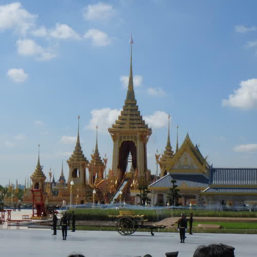 | คำอธิบาย : ราชรถปืนใหญ่ หรือราชรถรางปืน ใช้อัญเชิญพระบรมโกศพระมหากษัตริย์หรือพระโกศพระบรมวงศ์ ที่ทรงรับราชการทหารเมื่อครั้งยังทรงพระชนม์ชีพเวียนพระเมรุมาศโดยอุตราวัฏ 3 รอบ ราชรถปืนใหญ่องค์นี้สร้างขึ้นใหม่เพื่อทดแทนองค์เดิม เพื่อใช้ในพระราชพิธีถวายพระเพลิงพระบรมศพ พระบาทสมเด็จพระปรมินทรมหาภูมิพลอดุลยเดช บรมนาถบพิตร มีขนาด ยาว 7 เมตร (รวมทั้งส่วนหน้าและส่วนหลัง) สูง 1.85 เมตร ใช้กำลังพล 40 นาย ประกอบด้วย พลฉุดชัก 30 นาย พลบังคับเลี้ยว 2 นาย พลประคองกลาง 6 นาย พลประคองท้าย 2 นาย |