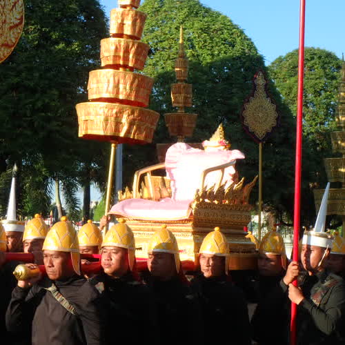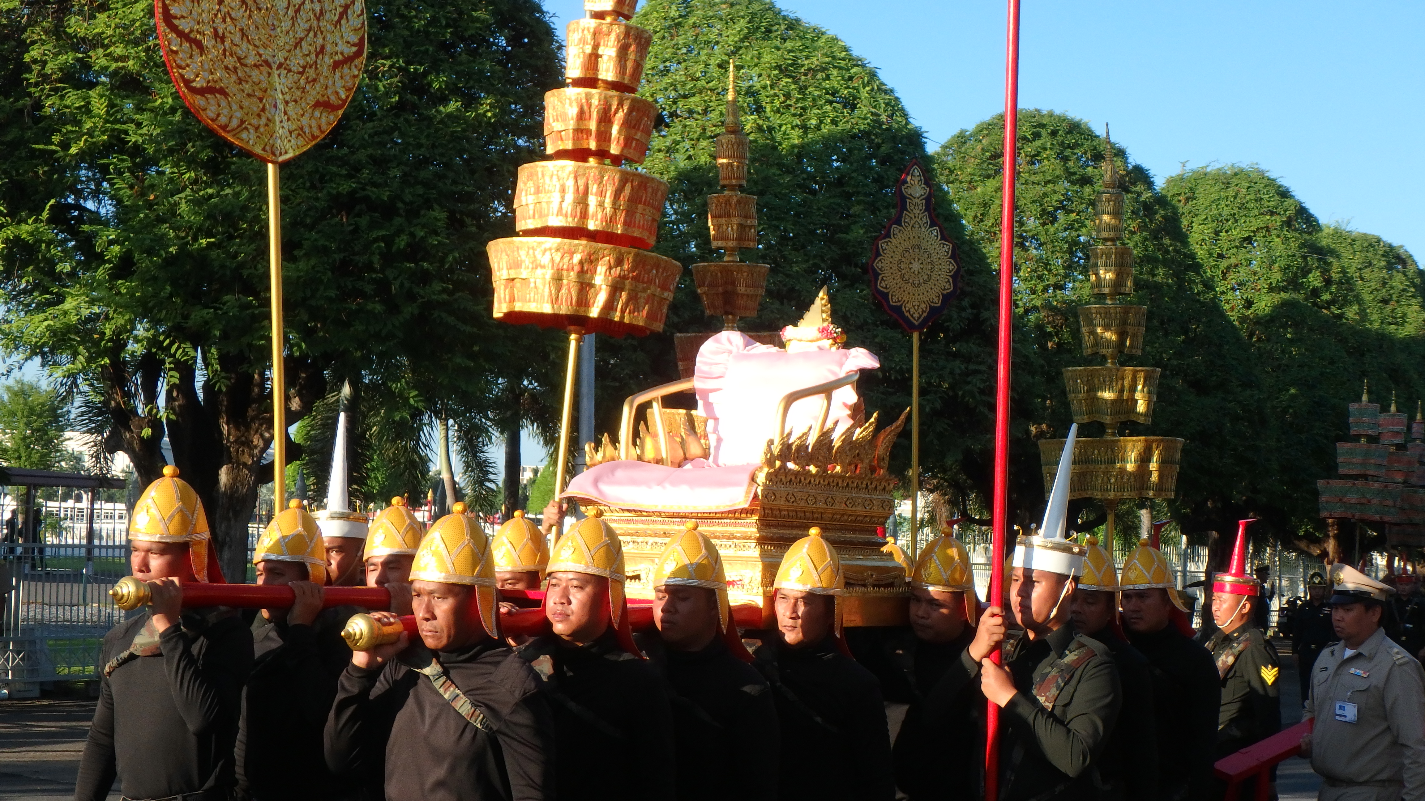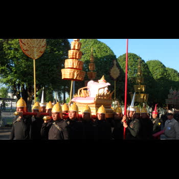 | คำอธิบาย : พระเสลี่ยงกลีบบัว เป็นพระราชยานสำหรับสมเด็จพระสังฆราชหรือพระราชาคณะนั่งอ่านพระอภิธรรมนำพระบรมโกศหรือพรโกศ ทำจากไม้แกะสลัก ปิดทอง ประดับกระจก มีขนาด กว้าง 0.82 เมตร ยาว 4.20 เมตร (รวมคานหาม) สูง 1.10 เมตร |