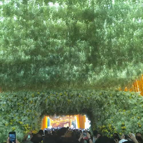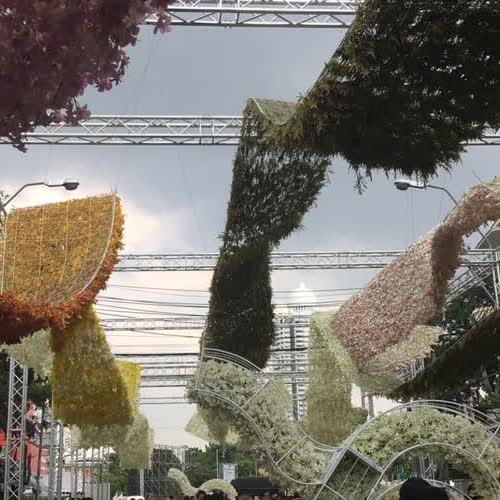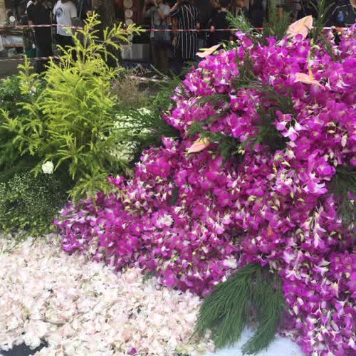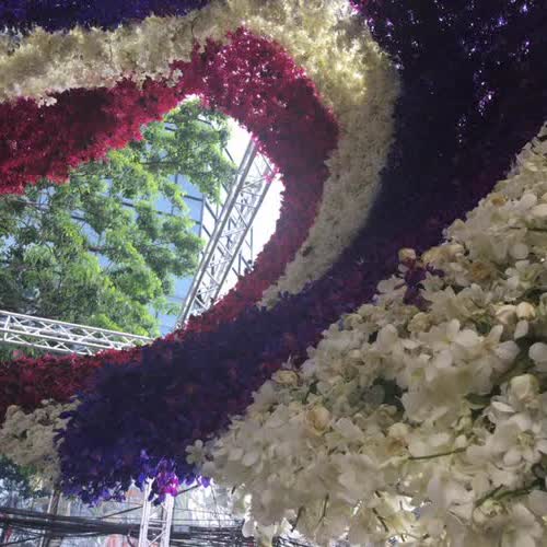 | คำอธิบาย : ภาพถ่ายจากกิจกรรม ดอกไม้เพื่อพ่อ ที่ชาวชุมชนปากคลองตลาดและจิตอาสากว่า 4,000 คน ร่วมใจกันเนรมิตถนนจักรเพชร ความยาว 400 เมตร จัดซุ้มดอกไม้หลายล้านดอก เพื่อแสดงความจงรักภักดีและน้อมสำนึกในพระมหากรุณาธิคุณอันหาที่สุดมิได้ ของพระบาทสมเด็จพระปรมินทรมหาภูมิพลอดุลยเดช บรมนาถบพิตร โดยแบ่งออกเป็น 6 ซุ้ม คือ ซุ้มที่ 1 คนไทย (Thais), ซุ้มที่ 2 สายฝน (The Rain), ซุ้มที่ 3 รอยเท้าพ่อ, ซุ้มที่ 4 บ้าน (Home), ซุ้มที่ 5 ๙ (King Rama IX) |